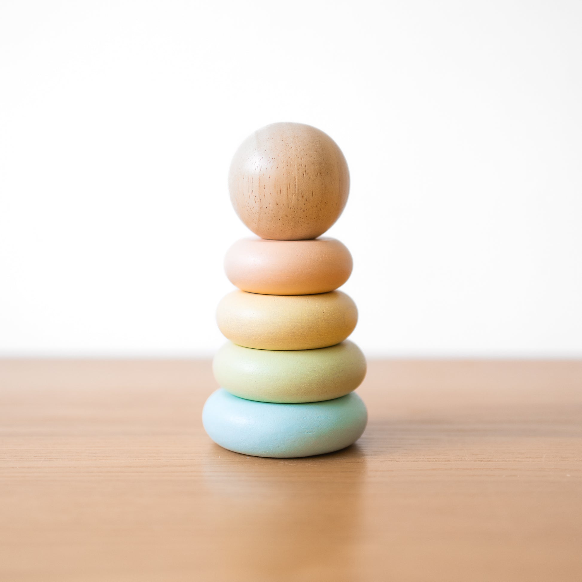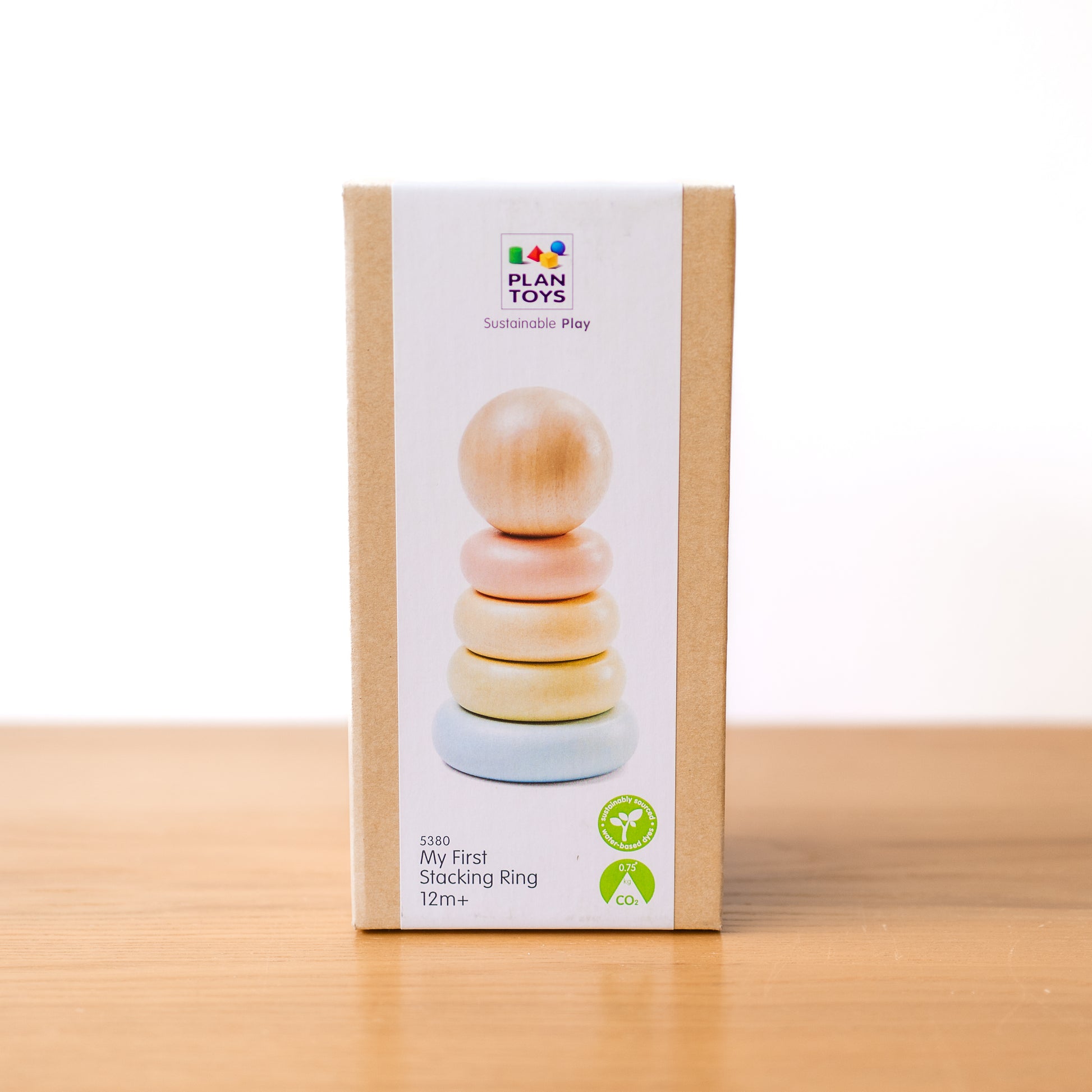 Start learning about size and order with this stacking ring. For safety precaution, the center rod is foldable.
