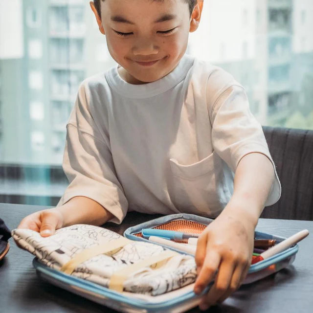 Thoughtfully designed to hold multiple HeyDoodle silicone colouring mats, this lightweight, zip-up case keeps everything organised and in one place. With space for your markers, mats and cloths, it’s perfect for travel, playdates, cafés or waiting rooms.