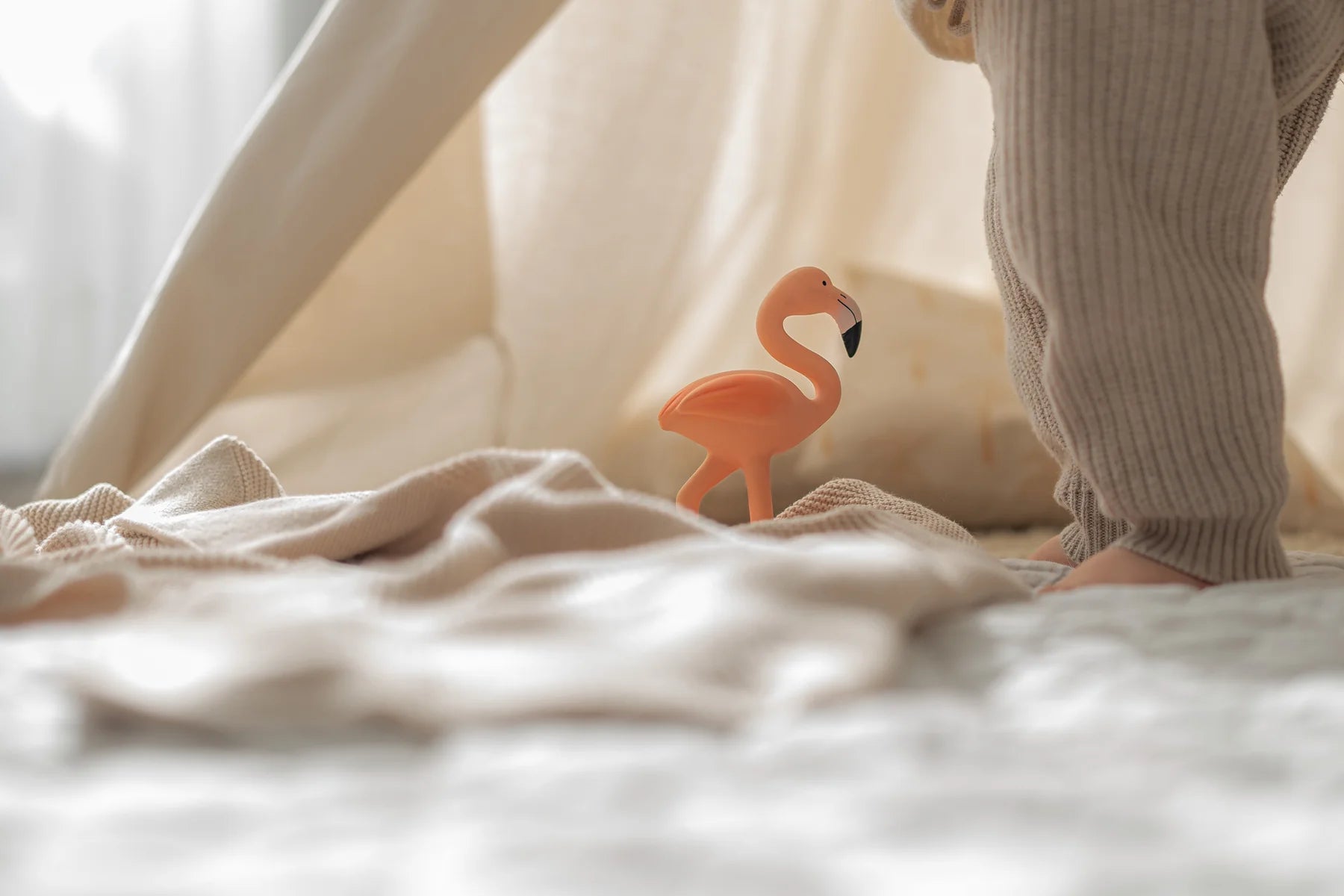 The Lingo Flamingo plant based teethers are 100% natural and safe for your little darling. Easy for little hands to grab and hold on to, Lingo’s long neck, quirky beak and webbed feet can help soothe your little one’s gums. By stimulating their sense of smell, sight, touch and taste, Lingo can help comfort your baby and acts as a calming distraction from teething. Designed by a mother, who understands the teething journey.