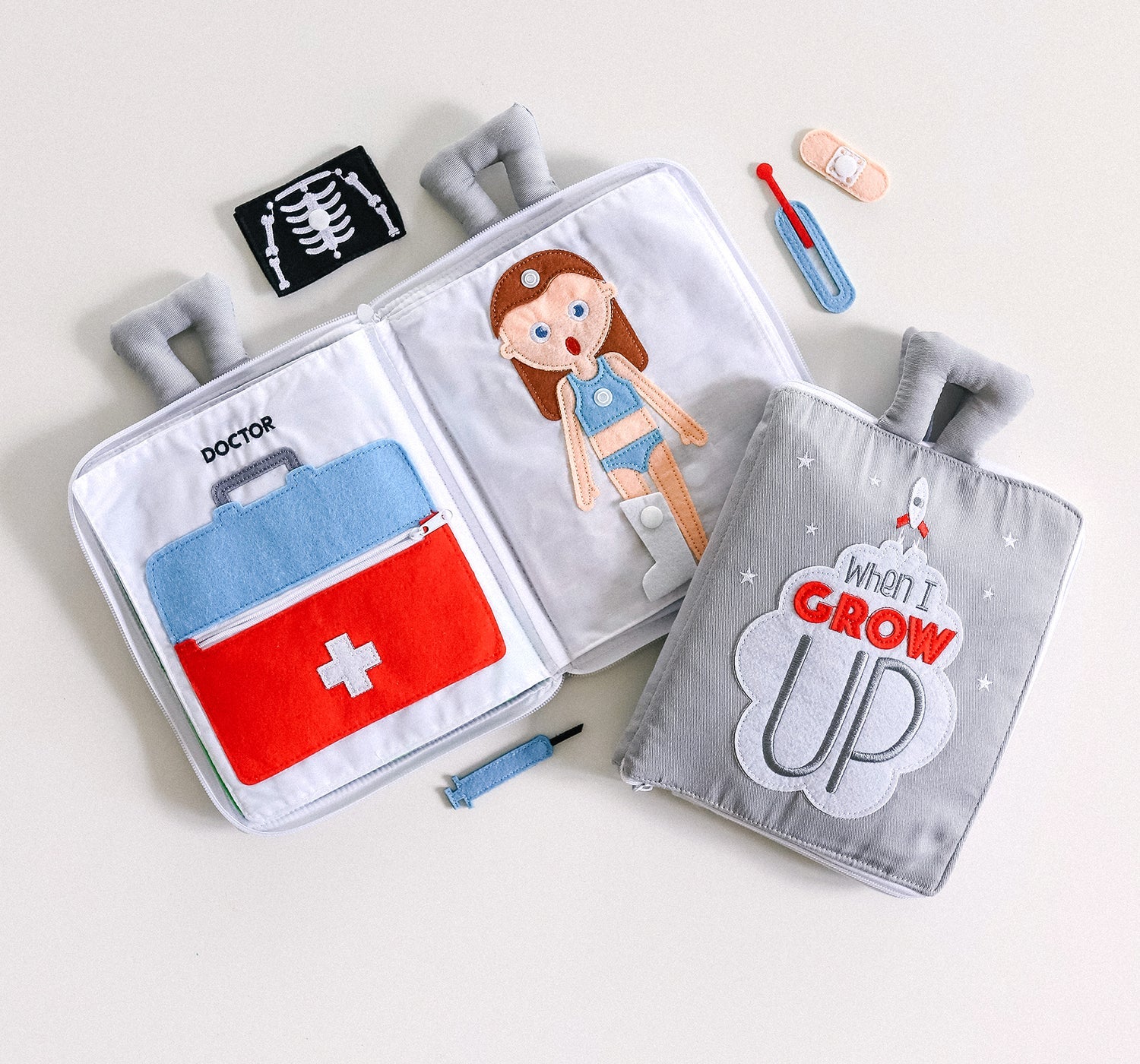 When I Grow Up is great for learning at home or for keeping little ones quietly entertained as a travel companion. It's perfect for keeping kids busy on car journeys, plane rides, train journeys, on the bus, at the airport or station, during church services, weddings, and in waiting rooms. Fully zips up to close and includes carry handles for easy portability.